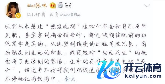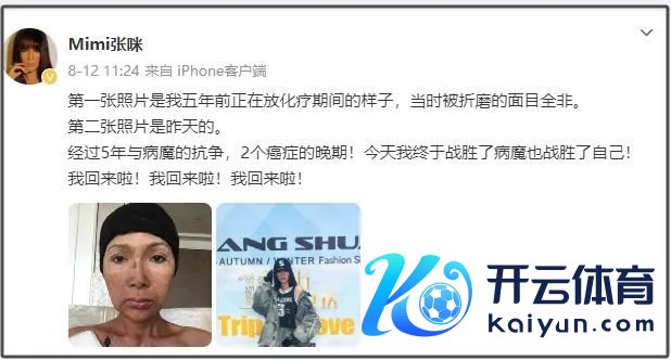 本年8月,她曾发文称经由近6年的构兵,资格了两次癌症晚期后,驯服了癌症。