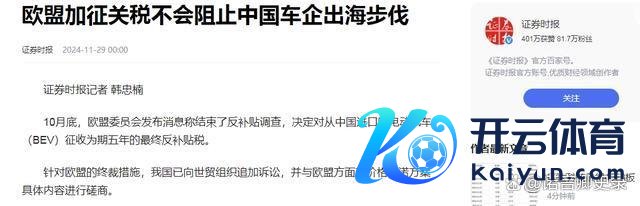 2、证券时报 《欧盟加征关税不会攻击中国车企出海秩序》