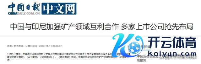 4、中国日报 《中国与印尼加强矿产限制互利协作 多家上市公司抢先布局》九游体育app官网